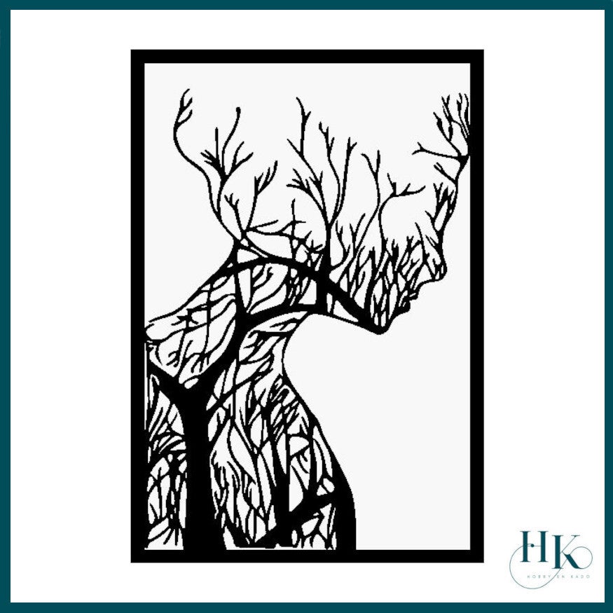 Wanddecoratie Hoofd van een vrouw met boomstructuur.