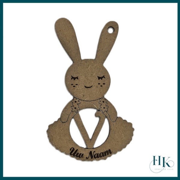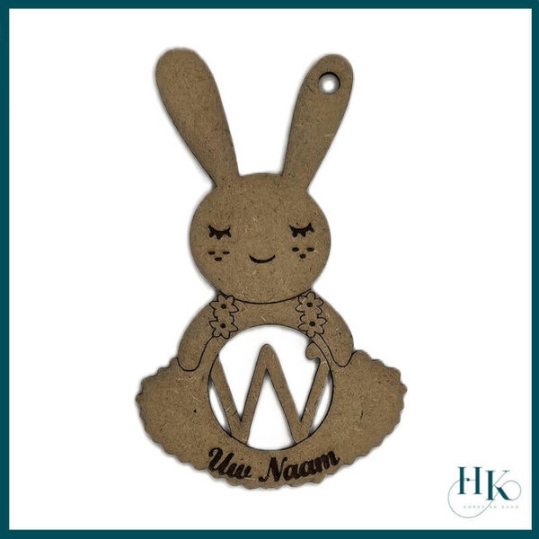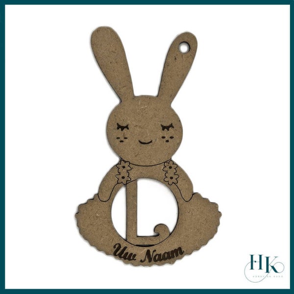 Leuke sleutelhanger waar uw eigen naam op wordt gegraveerd, leuk om kado te geven met de paasdagen. De hanger is uit MDF gelaserd en kan door uwzelf worden geschildert zie het voorbeeld. Schilderen gaat prima met acryl verf, en leuk om te doen.
