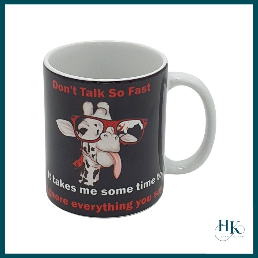 Deze prachtig kleurrijke mok met Giraffe met sarcastische tekst quote (Don't Talk So Fast, It Takes me some time to Ignore everything jou say) is een geweldige aanvulling voor elke koffieliefhebber of theedrinker. Het is niet alleen een functionele mok voor dagelijkse pauzes, maar ook een perfect cadeau voor verjaardagen, familieleden, collega's of voor een bijzondere gelegenheid.