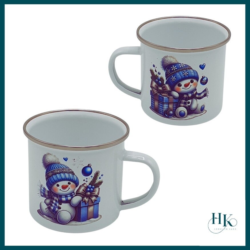 Bedrukte mok van emaile met sneeuwpop