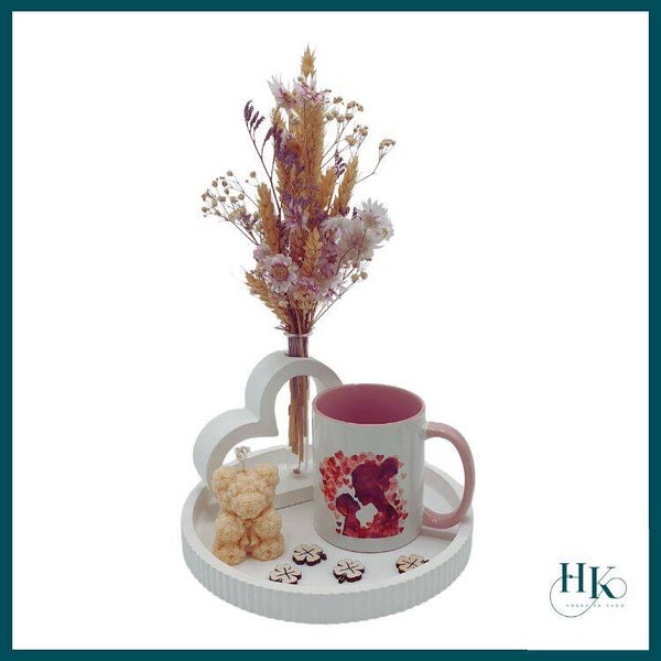 Kado pakket Basis Plateau met Hart van porseleingips, zelf samen te stellen.