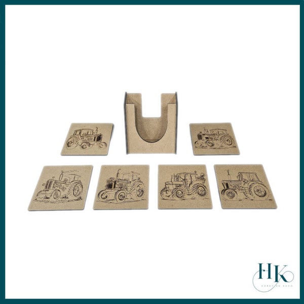 Leuke set van 6 onderzetters met afbeeldingen van tractoren. Alle 6 hebben een andere afbeelding. De onderzetter zijn ongeveer 10 x 10 cm