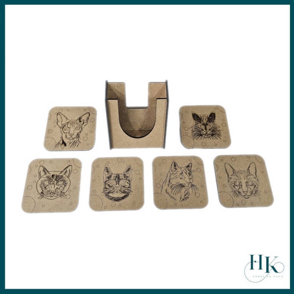 Leuke set van 6 onderzetters met afbeeldingen van katten. Alle 6 de onderzetters hebben een andere afbeelding. De onderzetter zijn ongeveer 10 x 10 cm